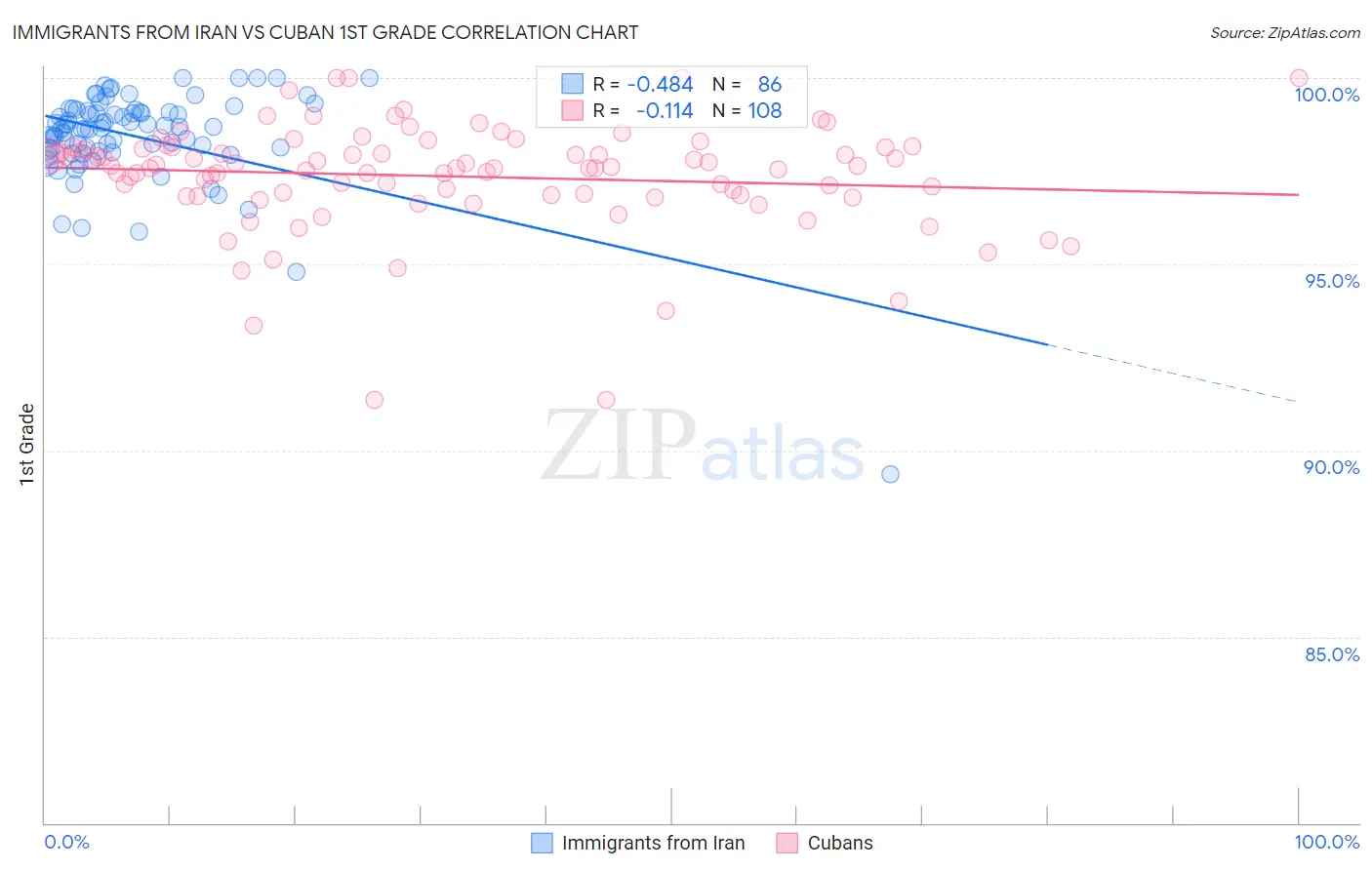 Immigrants from Iran vs Cuban 1st Grade Correlation Chart