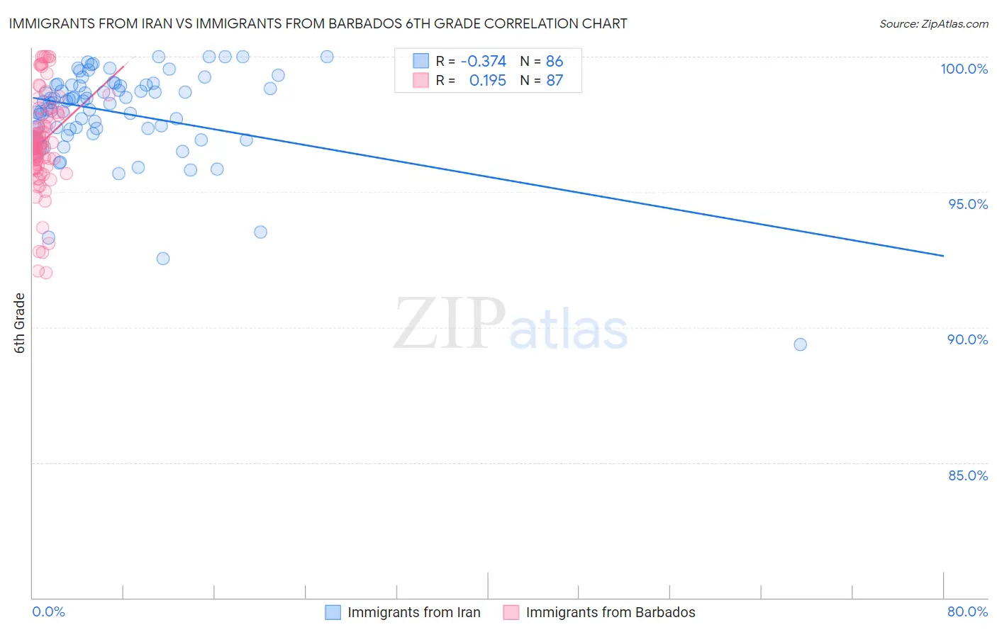 Immigrants from Iran vs Immigrants from Barbados 6th Grade Correlation Chart