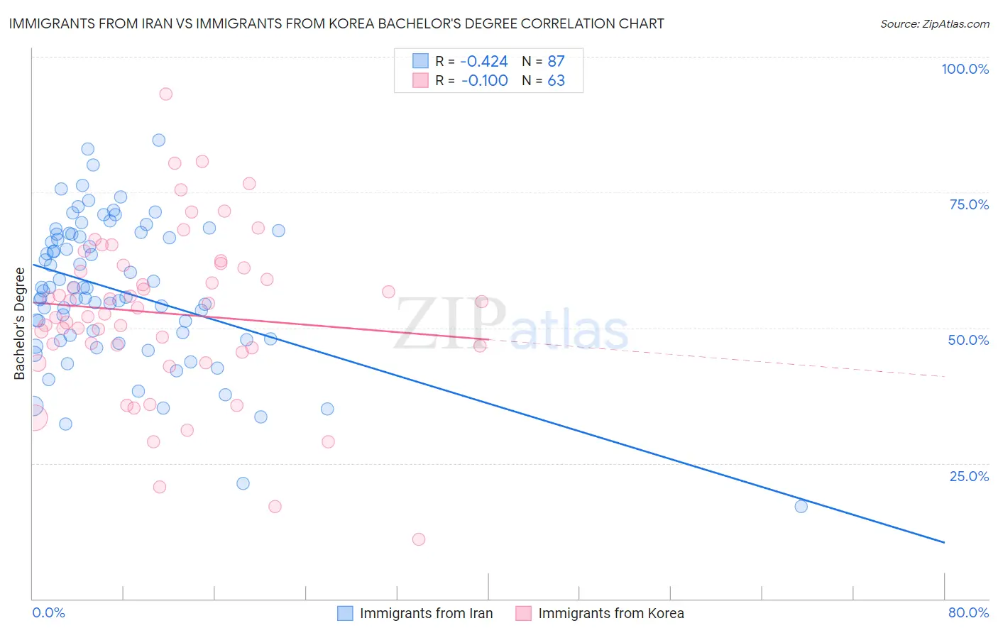 Immigrants from Iran vs Immigrants from Korea Bachelor's Degree Correlation Chart