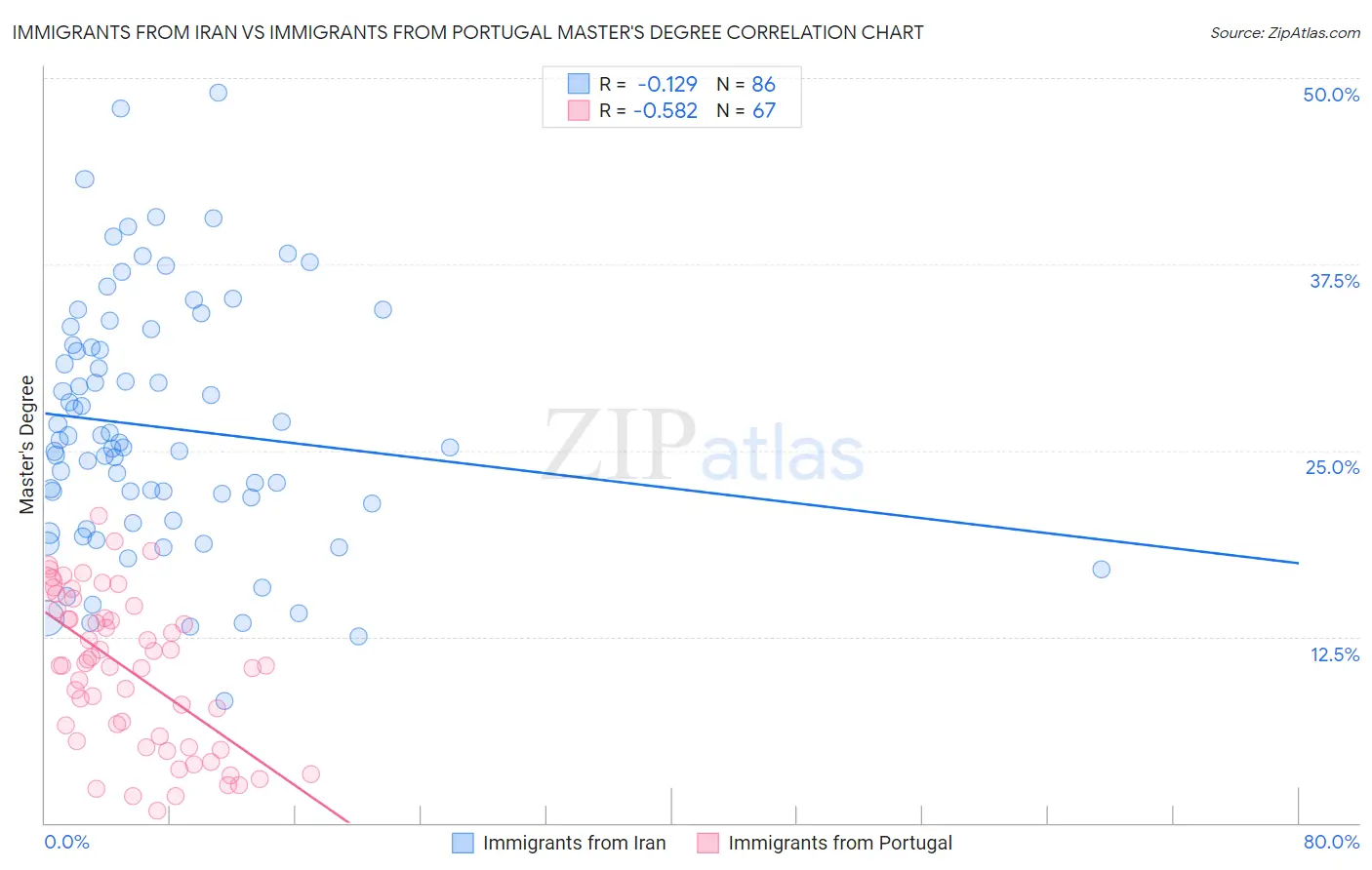 Immigrants from Iran vs Immigrants from Portugal Master's Degree Correlation Chart