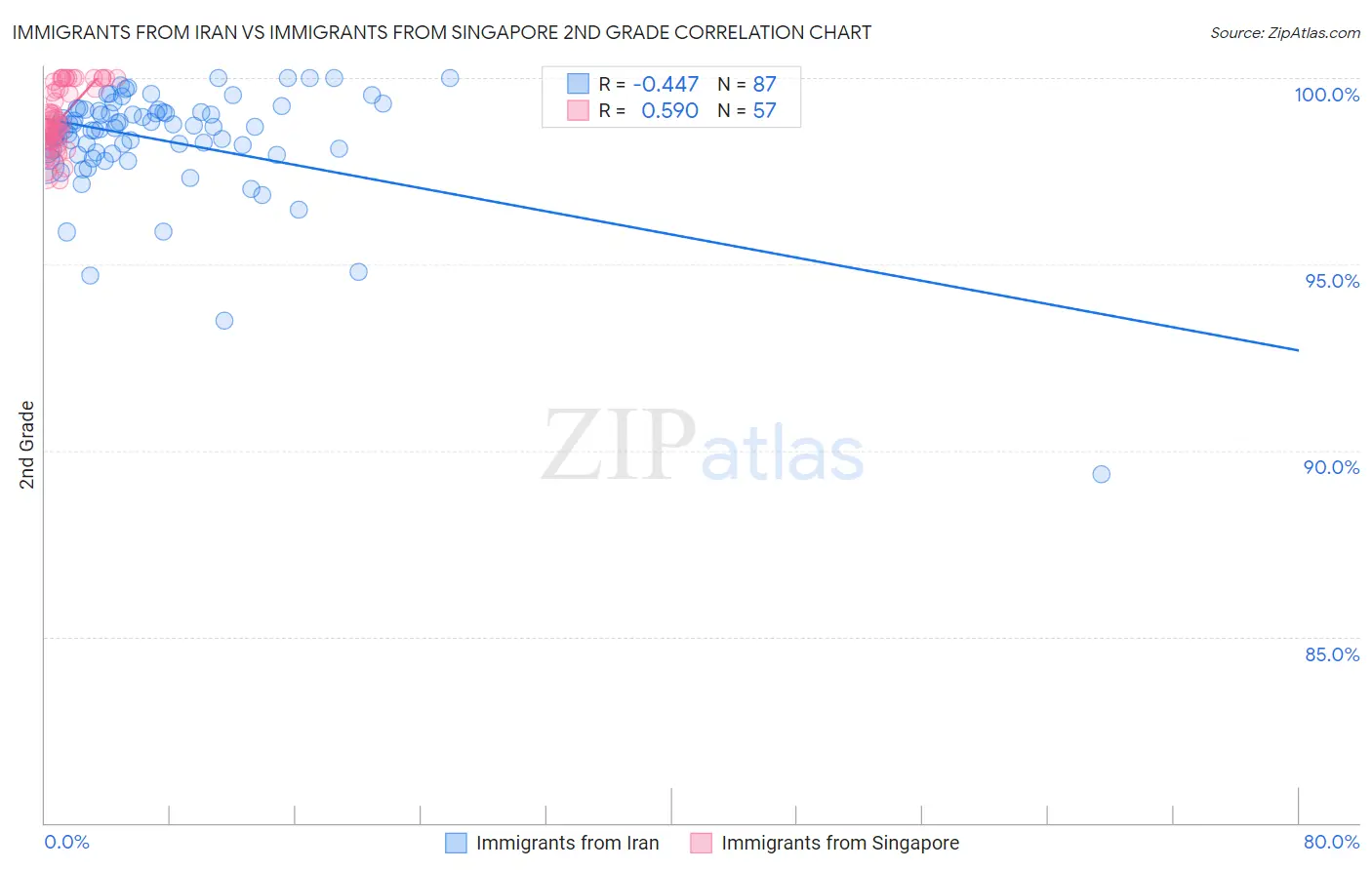 Immigrants from Iran vs Immigrants from Singapore 2nd Grade Correlation Chart