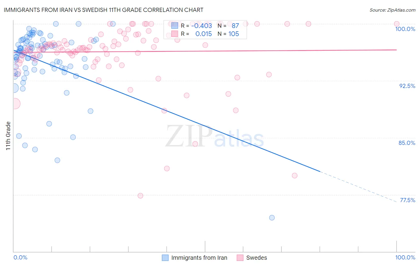 Immigrants from Iran vs Swedish 11th Grade Correlation Chart
