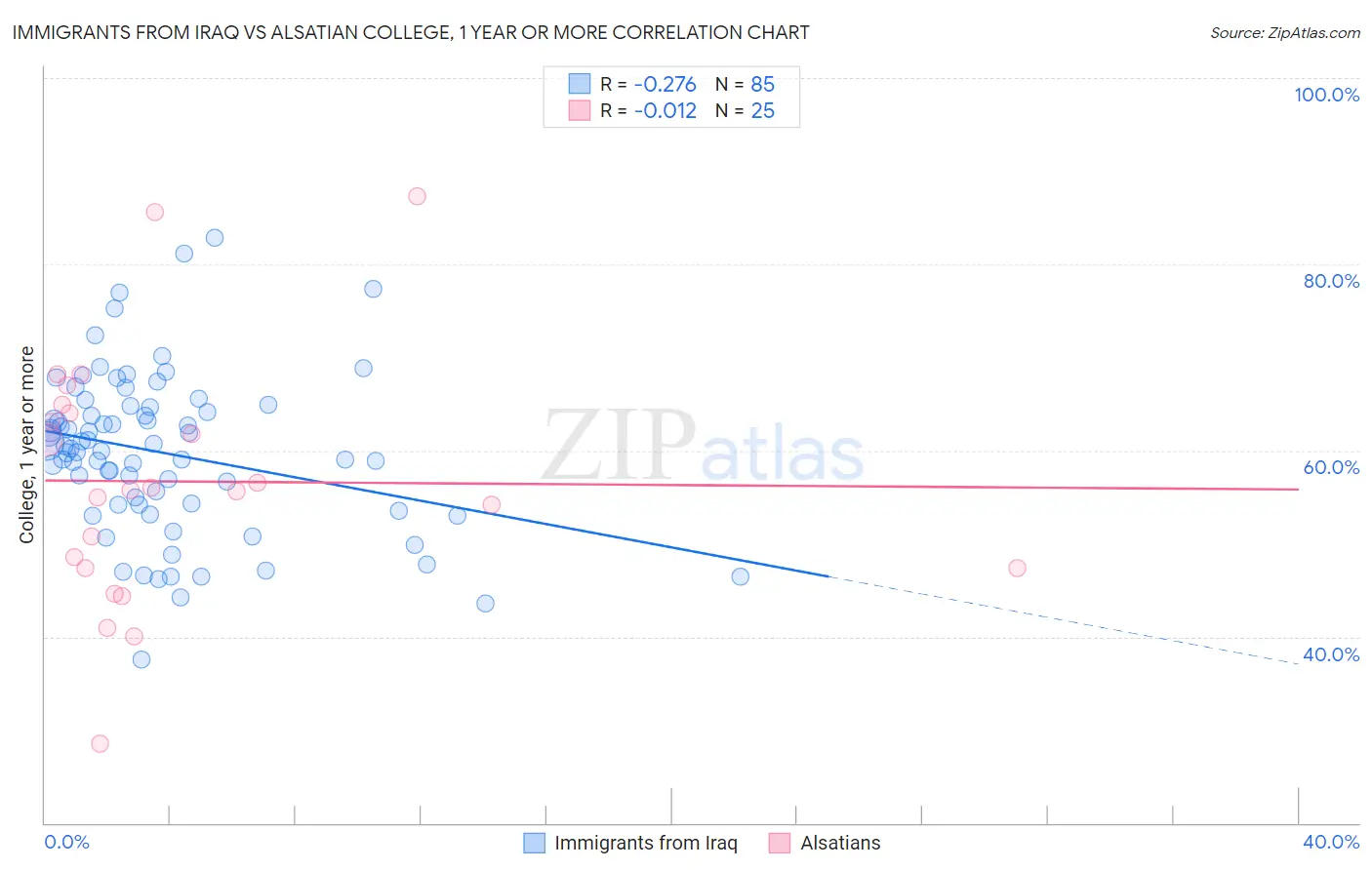 Immigrants from Iraq vs Alsatian College, 1 year or more Correlation Chart