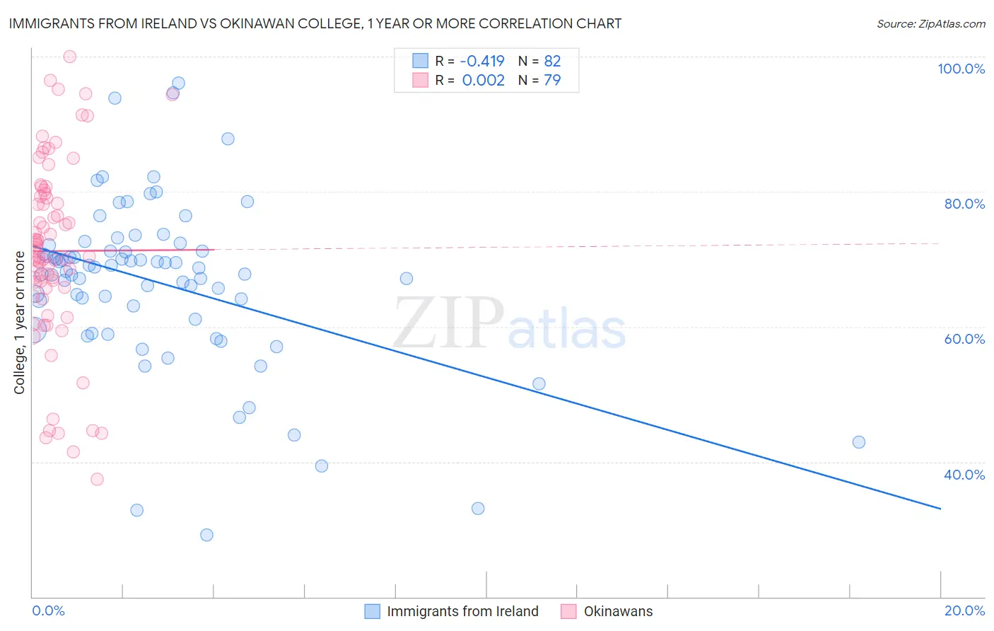 Immigrants from Ireland vs Okinawan College, 1 year or more Correlation Chart
