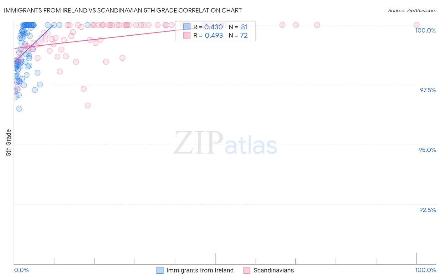 Immigrants from Ireland vs Scandinavian 5th Grade Correlation Chart