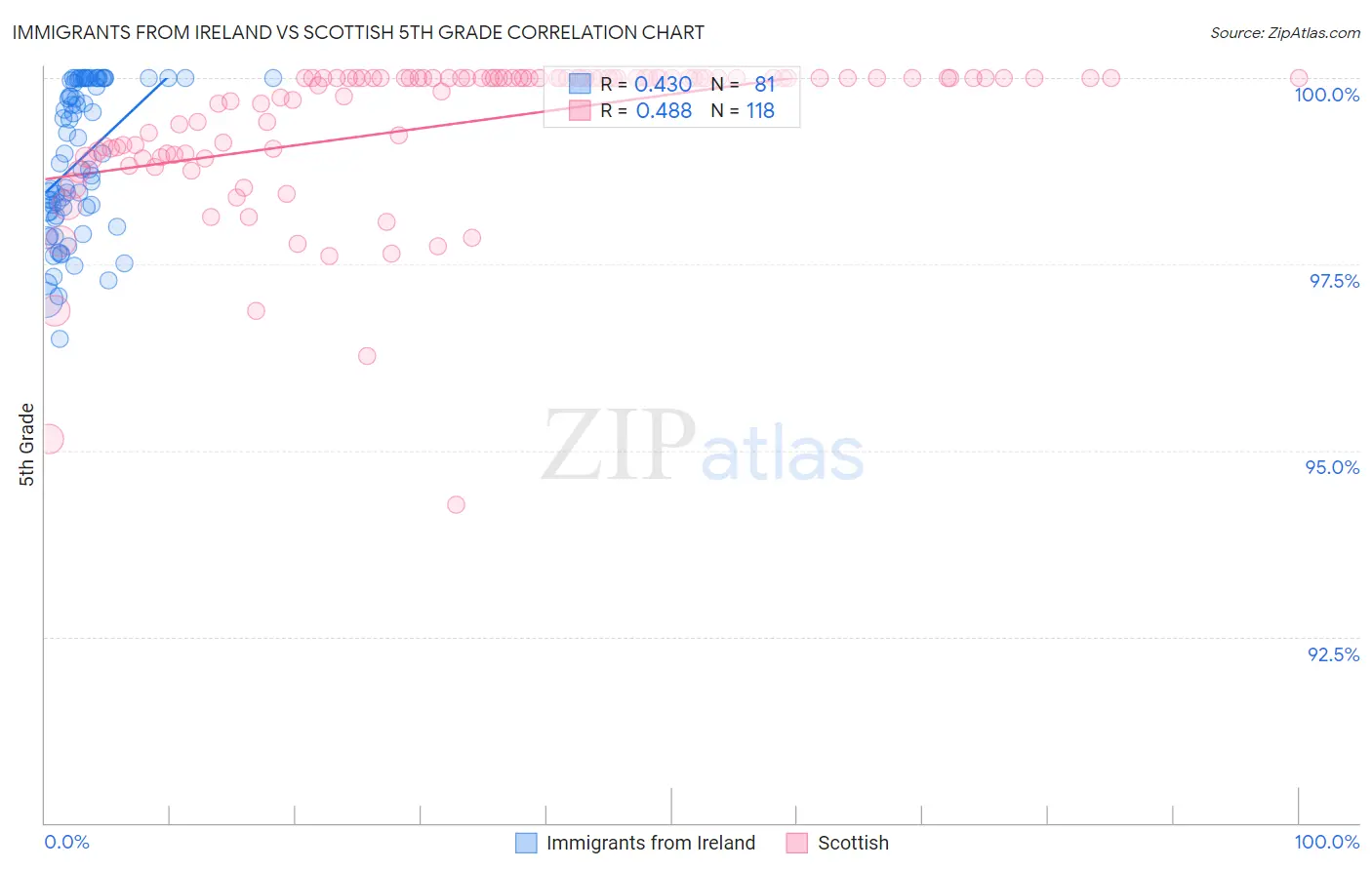 Immigrants from Ireland vs Scottish 5th Grade Correlation Chart