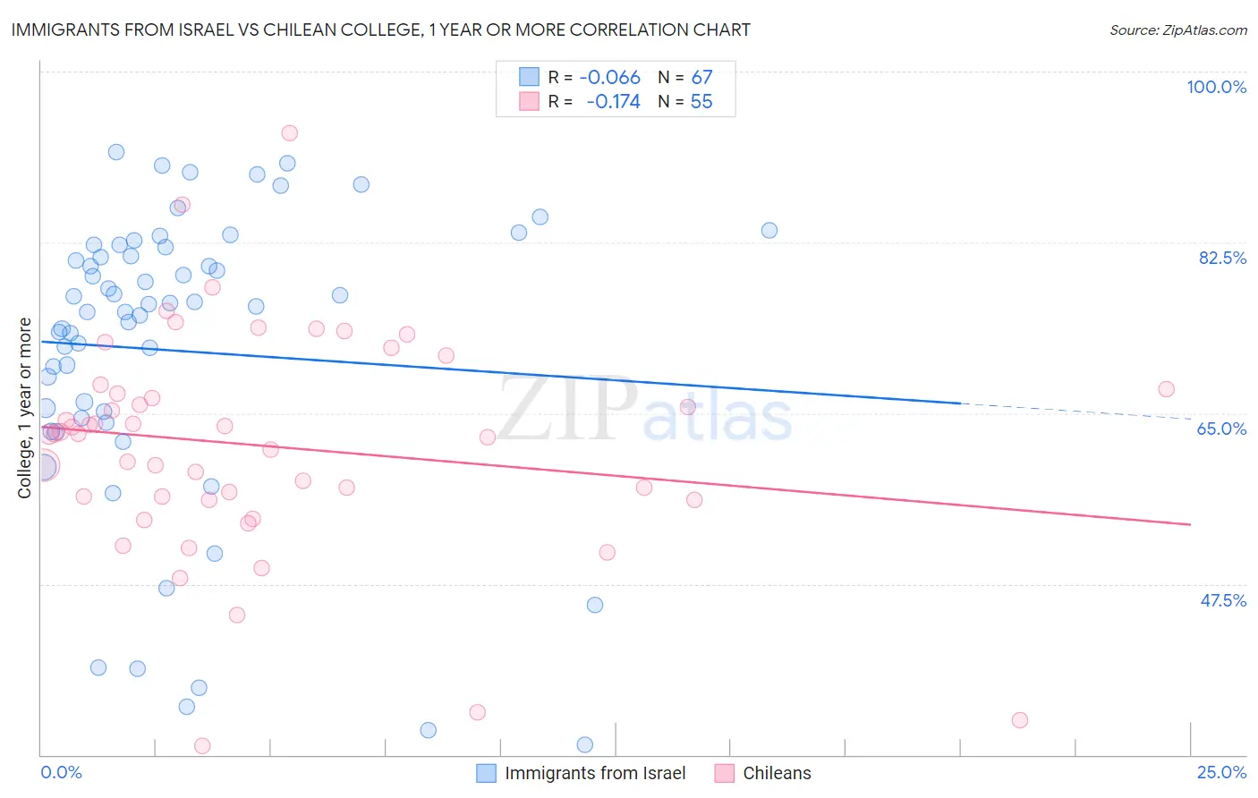 Immigrants from Israel vs Chilean College, 1 year or more Correlation Chart