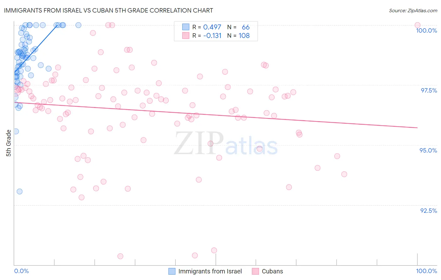 Immigrants from Israel vs Cuban 5th Grade Correlation Chart