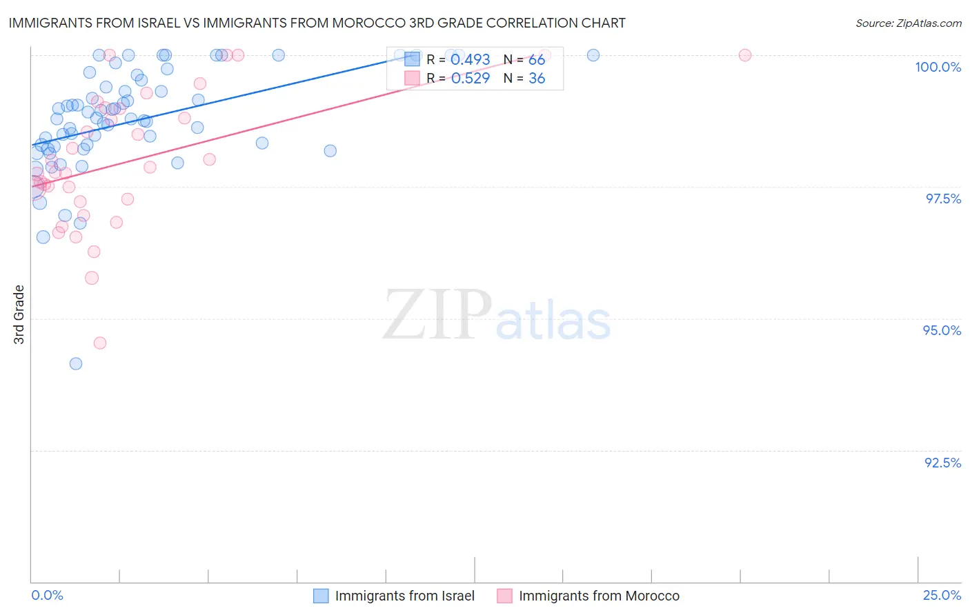 Immigrants from Israel vs Immigrants from Morocco 3rd Grade Correlation Chart
