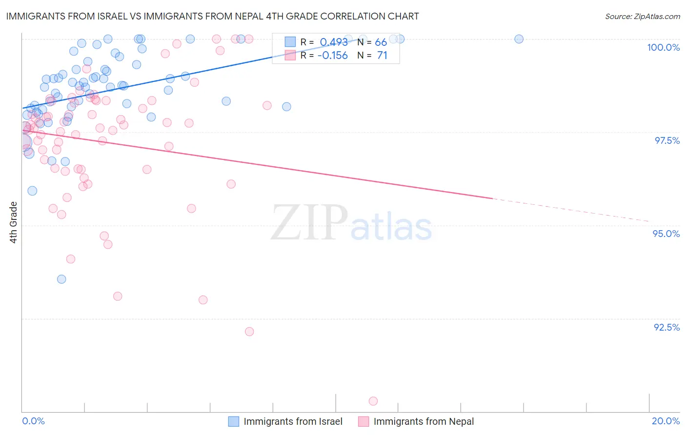 Immigrants from Israel vs Immigrants from Nepal 4th Grade Correlation Chart