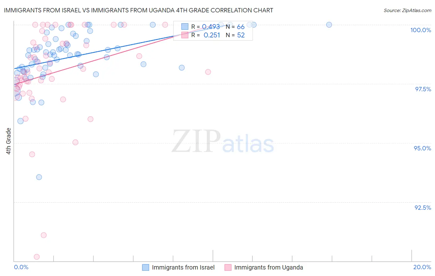 Immigrants from Israel vs Immigrants from Uganda 4th Grade Correlation Chart