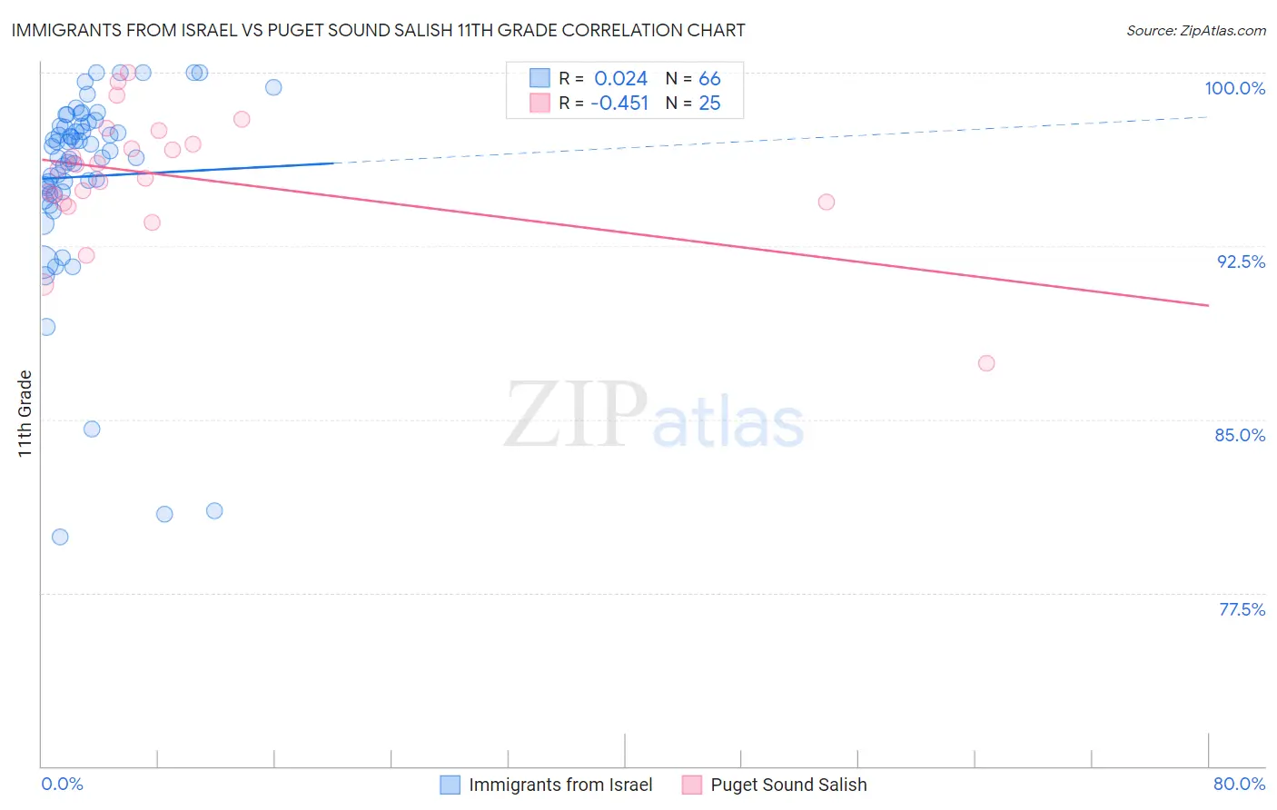 Immigrants from Israel vs Puget Sound Salish 11th Grade Correlation Chart
