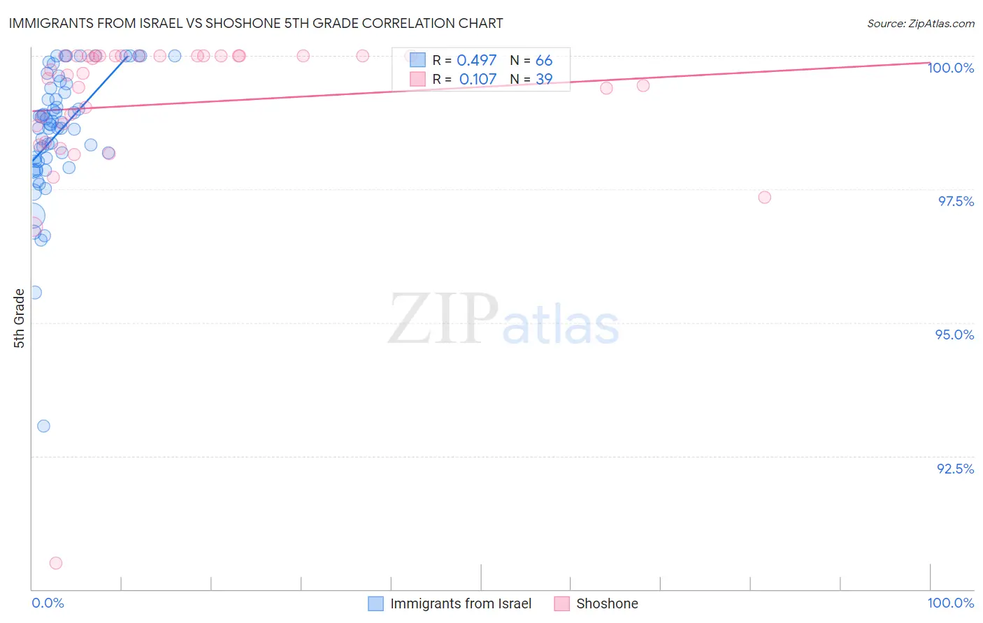 Immigrants from Israel vs Shoshone 5th Grade Correlation Chart