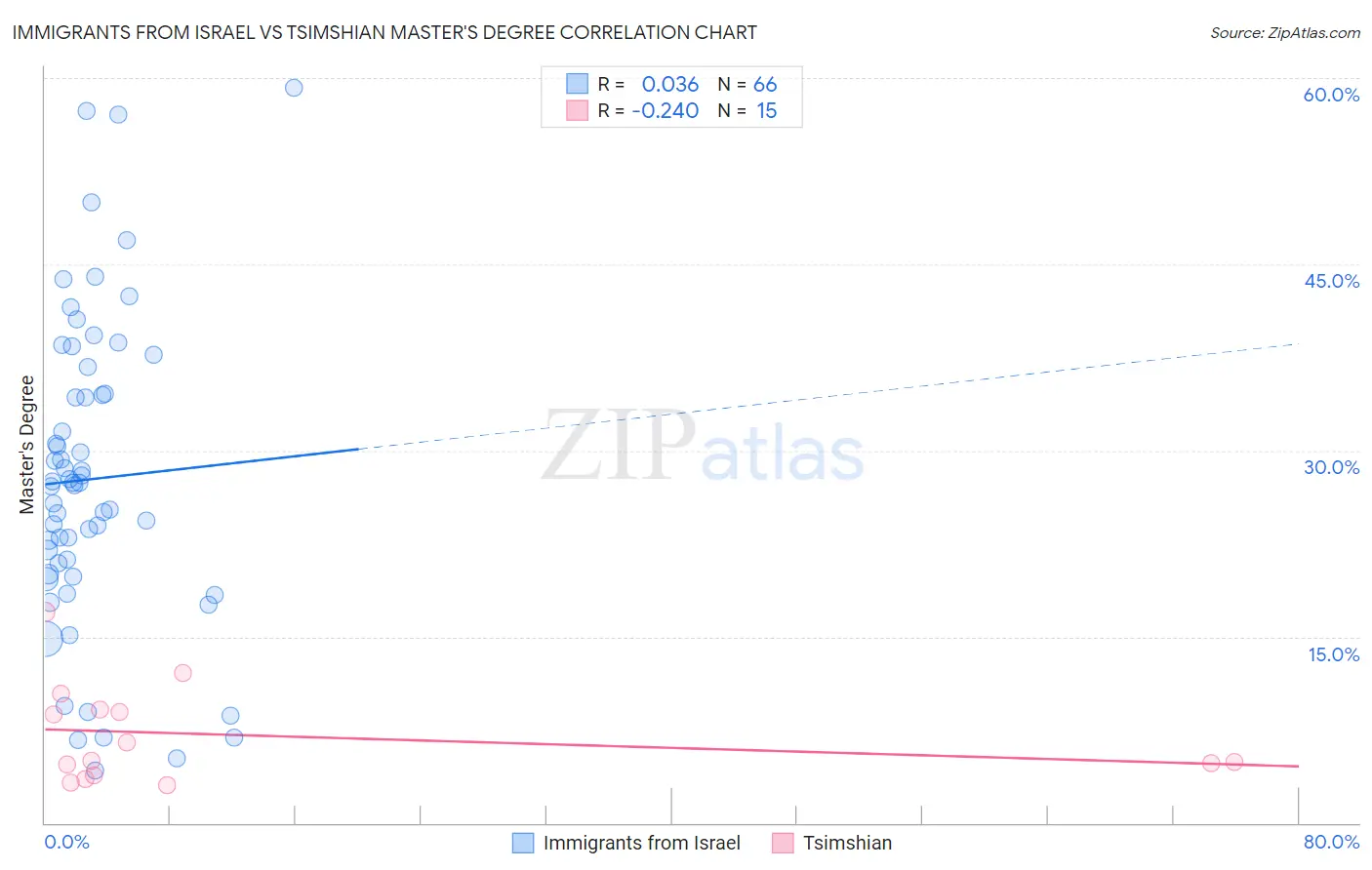 Immigrants from Israel vs Tsimshian Master's Degree Correlation Chart