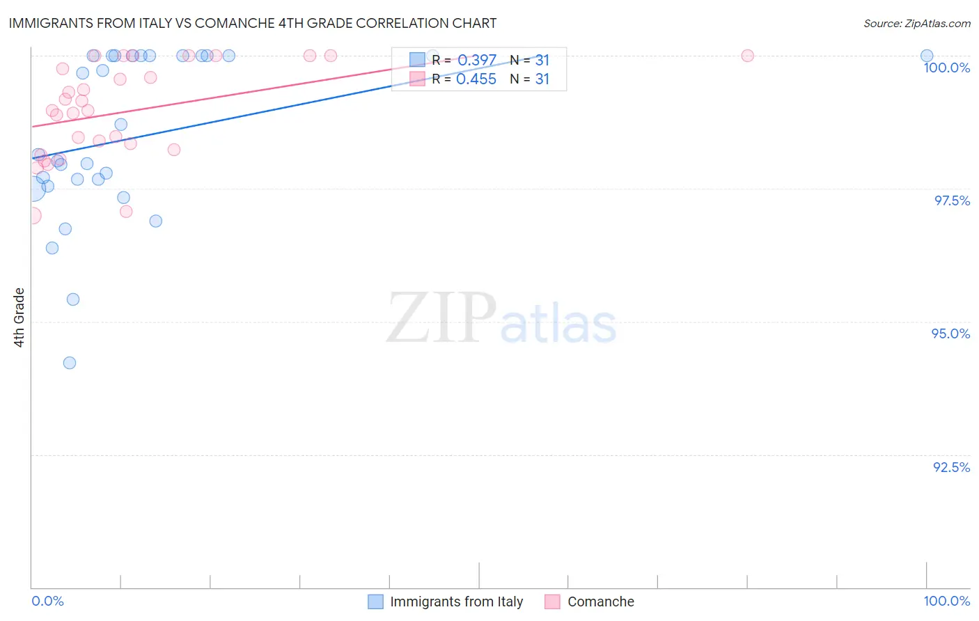 Immigrants from Italy vs Comanche 4th Grade Correlation Chart