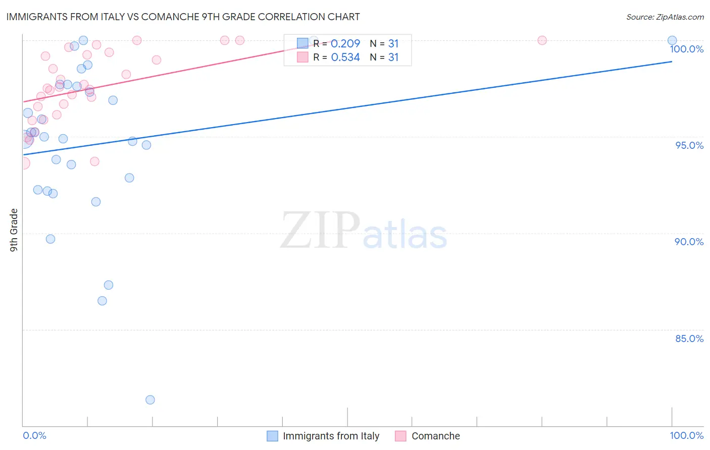 Immigrants from Italy vs Comanche 9th Grade Correlation Chart