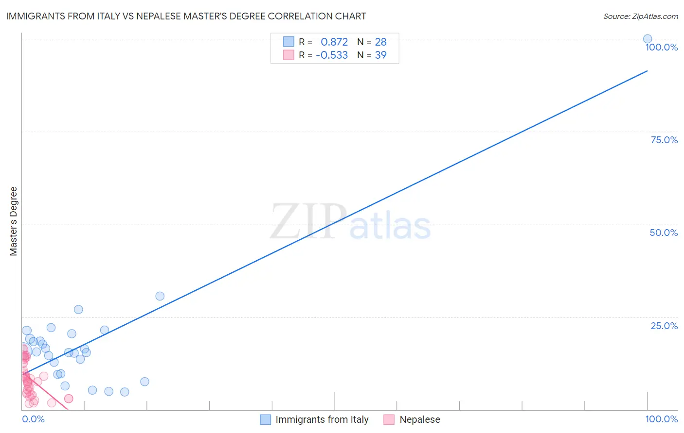 Immigrants from Italy vs Nepalese Master's Degree Correlation Chart