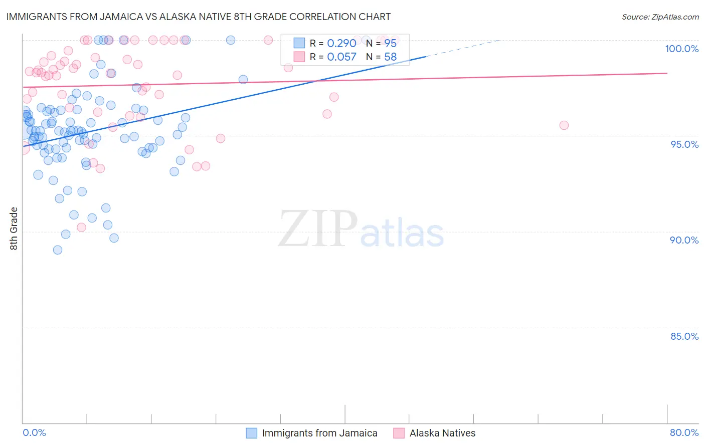 Immigrants from Jamaica vs Alaska Native 8th Grade Correlation Chart