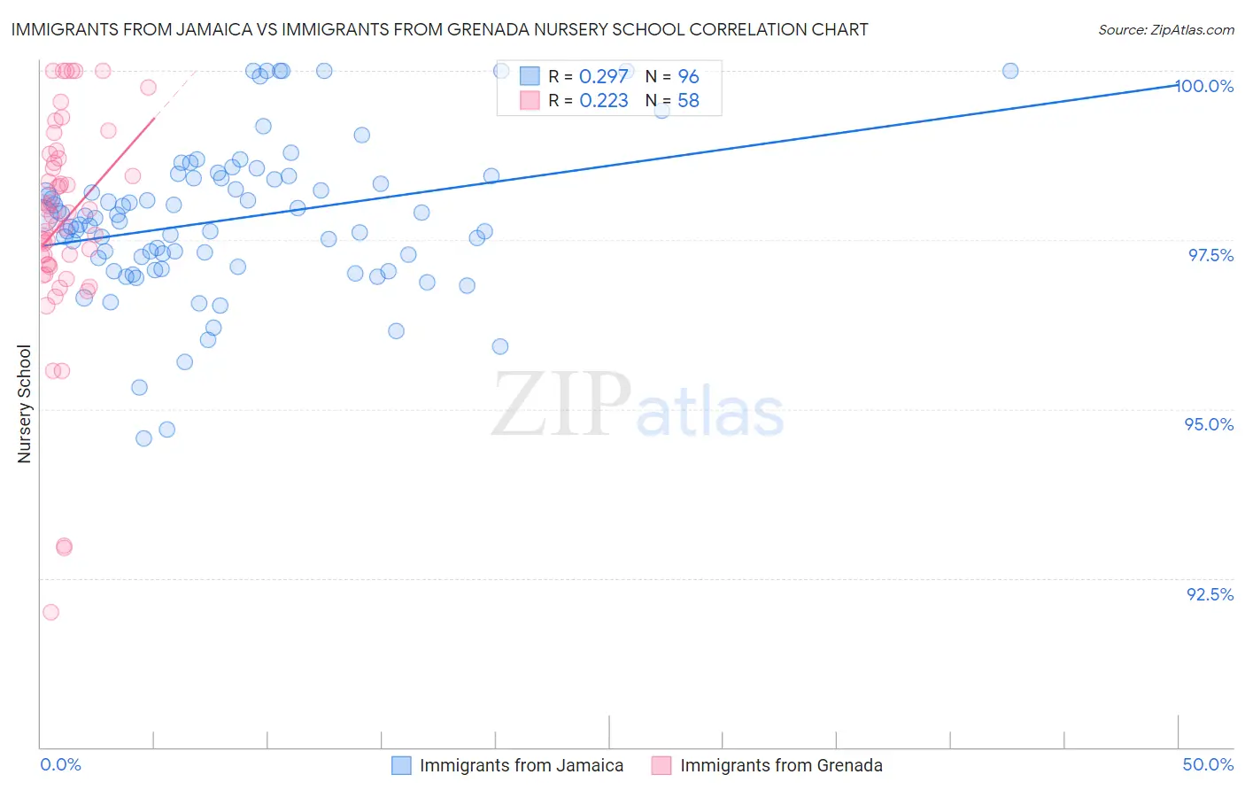 Immigrants from Jamaica vs Immigrants from Grenada Nursery School Correlation Chart