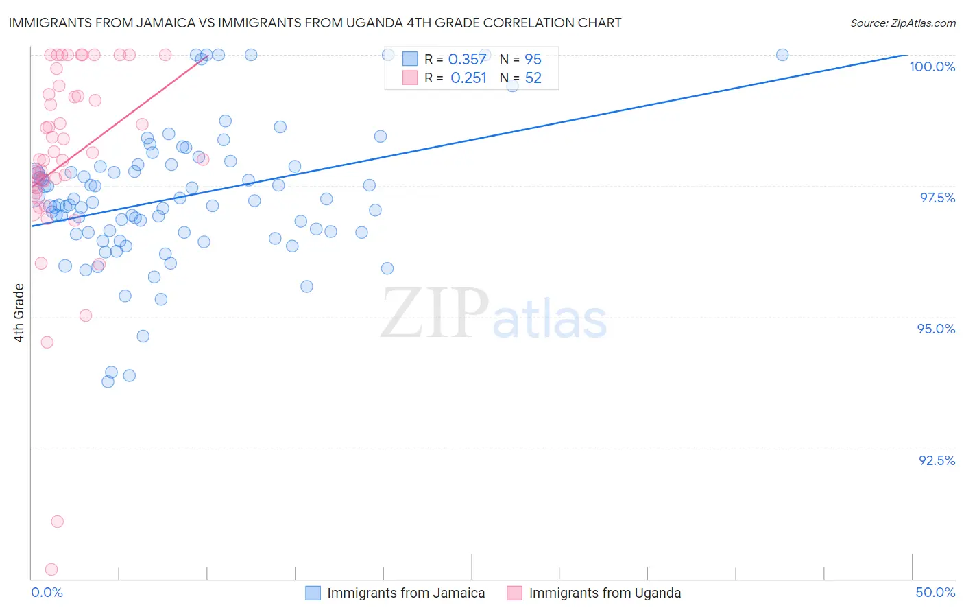 Immigrants from Jamaica vs Immigrants from Uganda 4th Grade Correlation Chart