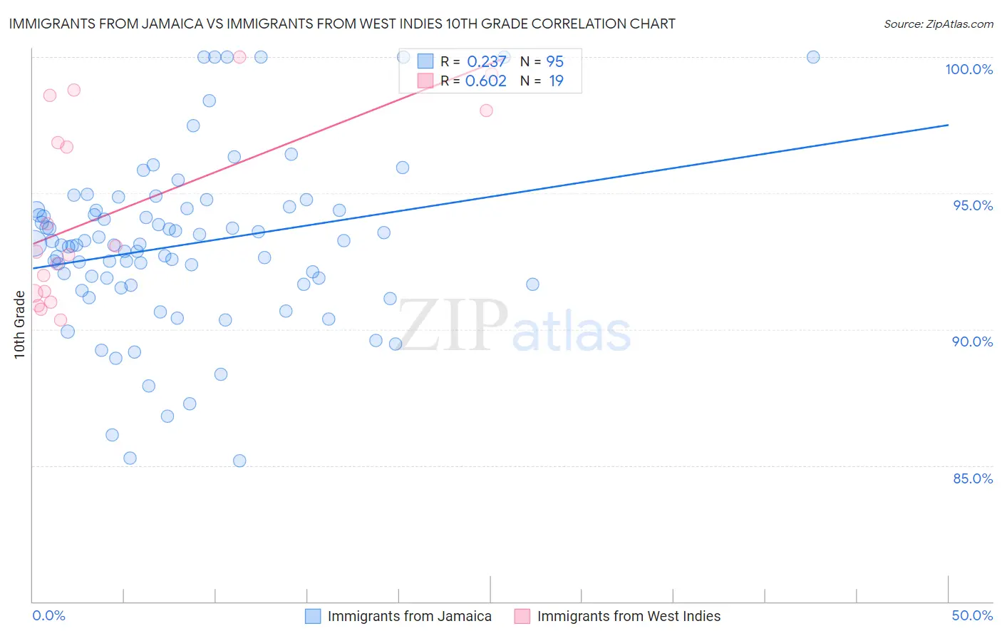 Immigrants from Jamaica vs Immigrants from West Indies 10th Grade