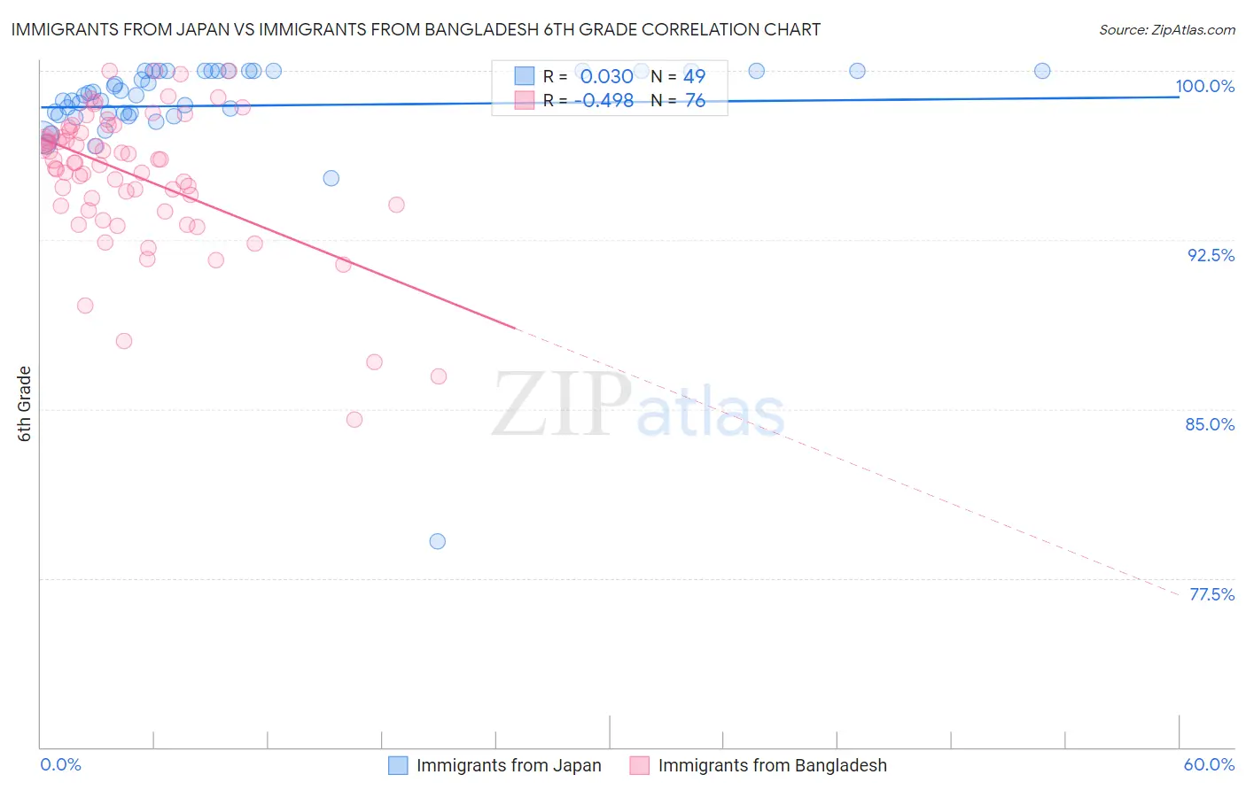 Immigrants from Japan vs Immigrants from Bangladesh 6th Grade Correlation Chart