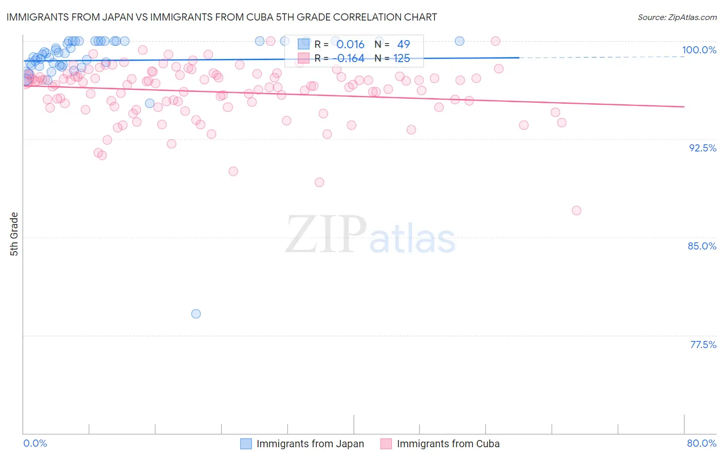 Immigrants from Japan vs Immigrants from Cuba 5th Grade Correlation Chart