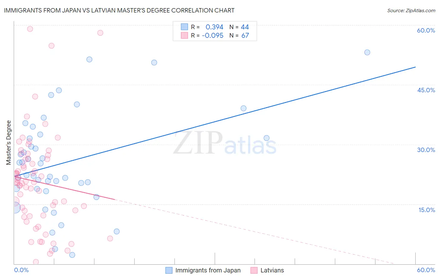 Immigrants from Japan vs Latvian Master's Degree Correlation Chart