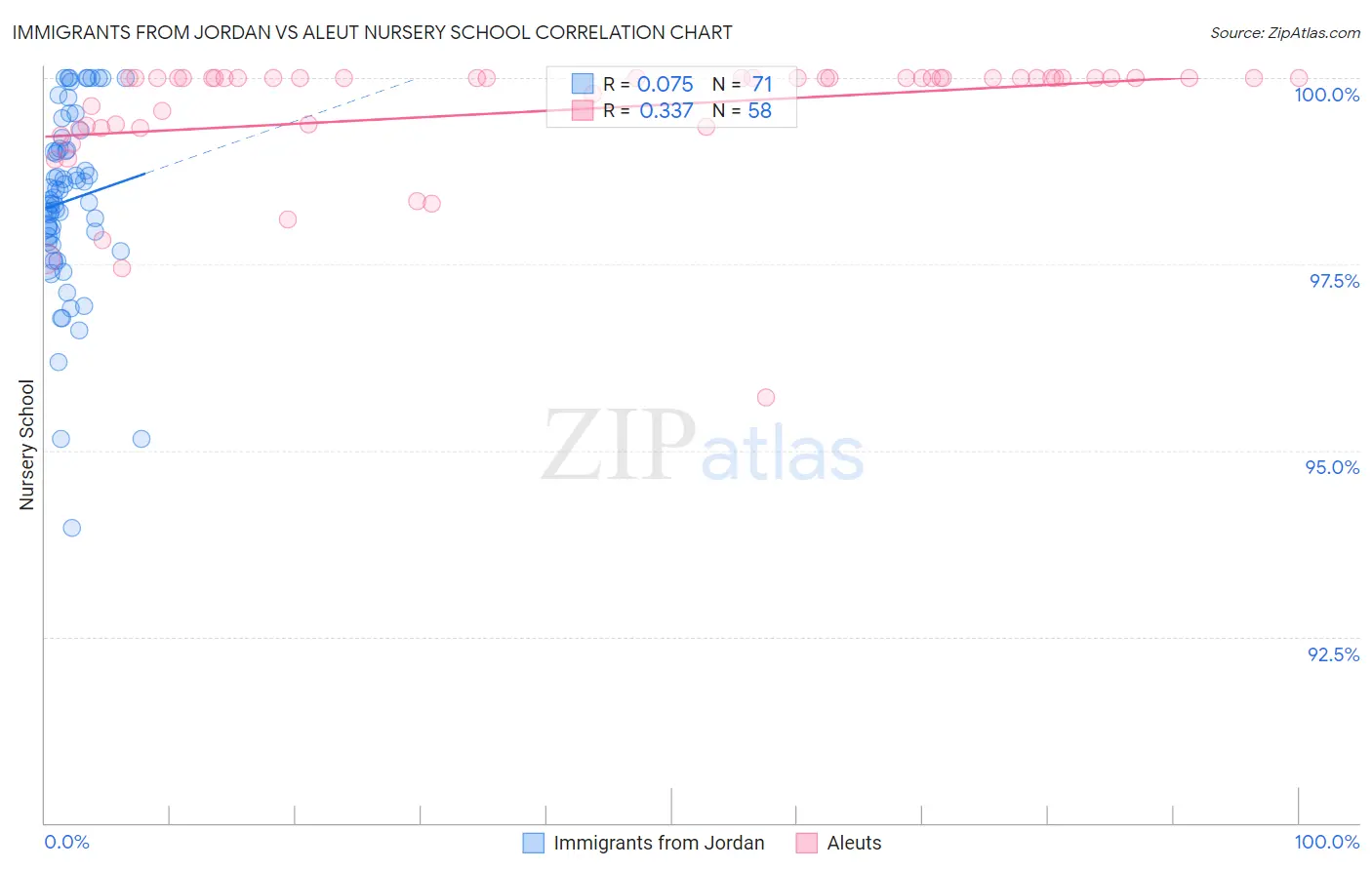 Immigrants from Jordan vs Aleut Nursery School Correlation Chart