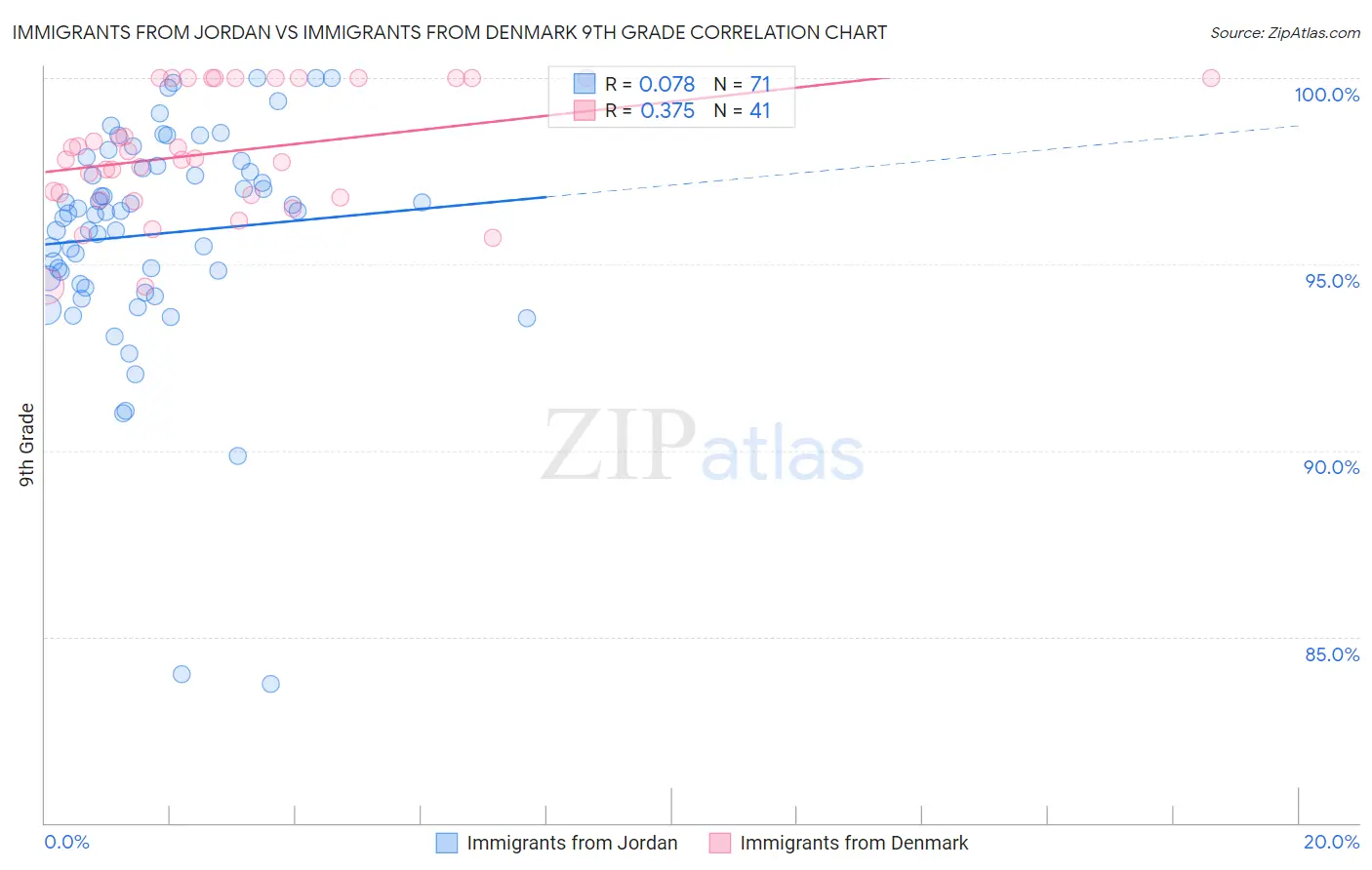 Immigrants from Jordan vs Immigrants from Denmark 9th Grade Correlation Chart