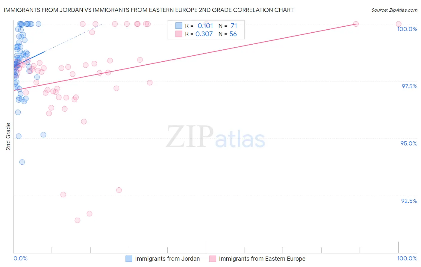 Immigrants from Jordan vs Immigrants from Eastern Europe 2nd Grade Correlation Chart