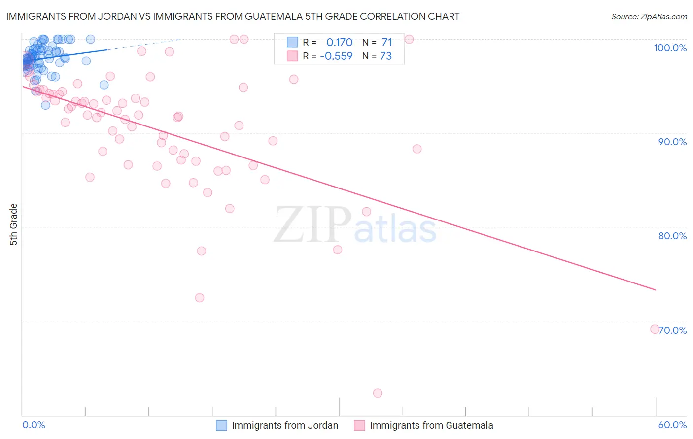 Immigrants from Jordan vs Immigrants from Guatemala 5th Grade Correlation Chart