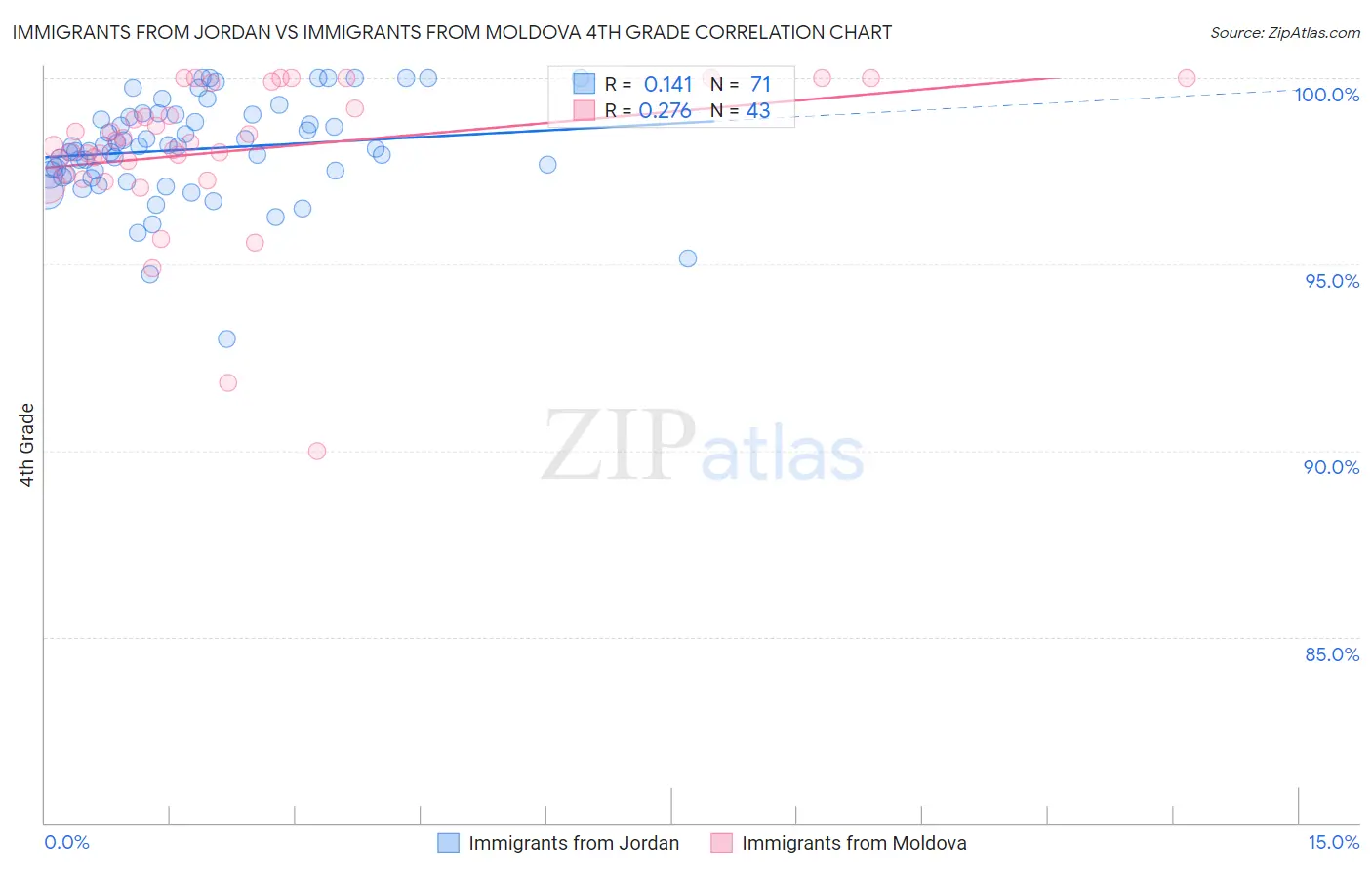 Immigrants from Jordan vs Immigrants from Moldova 4th Grade Correlation Chart