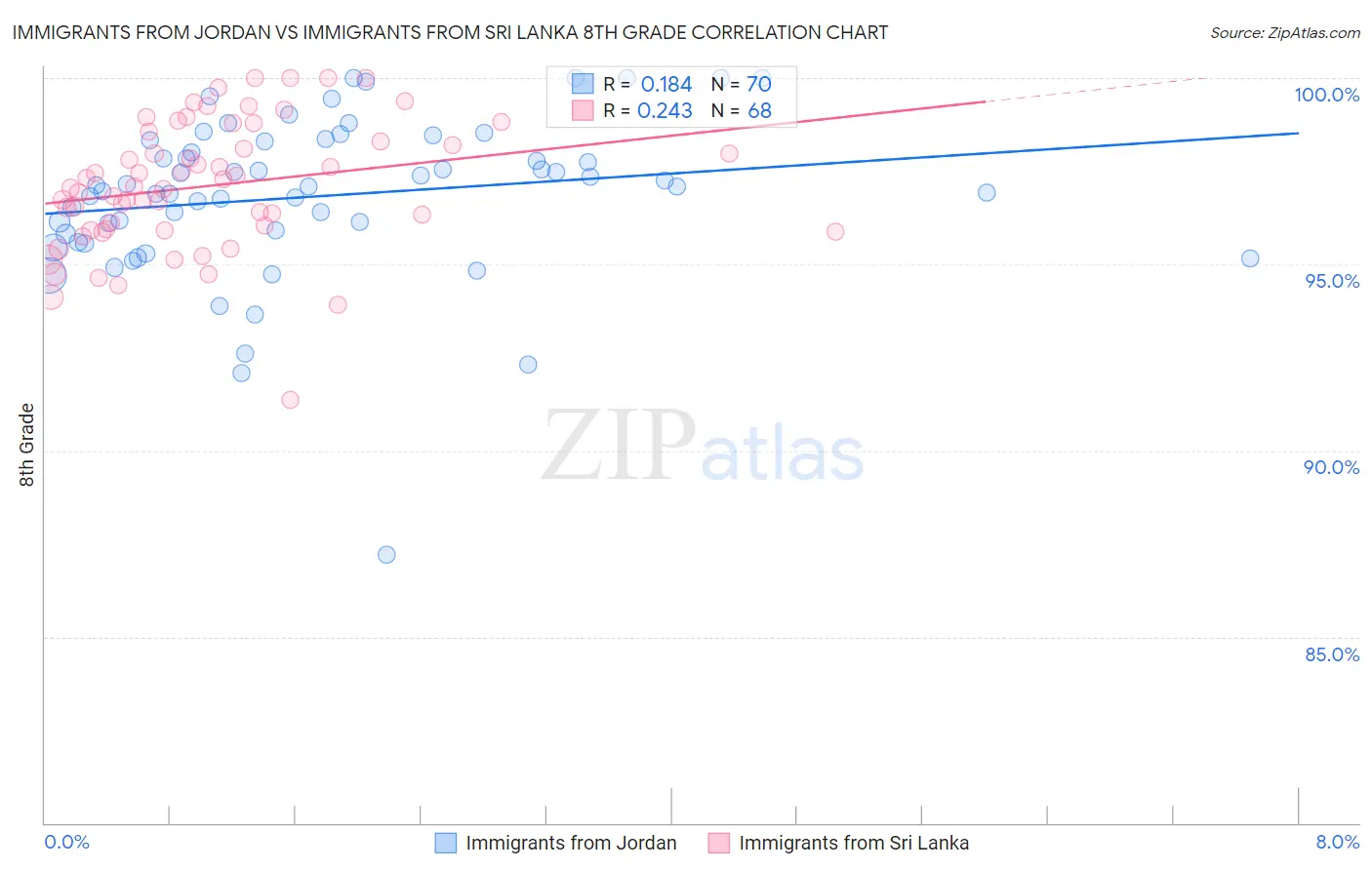 Immigrants from Jordan vs Immigrants from Sri Lanka 8th Grade