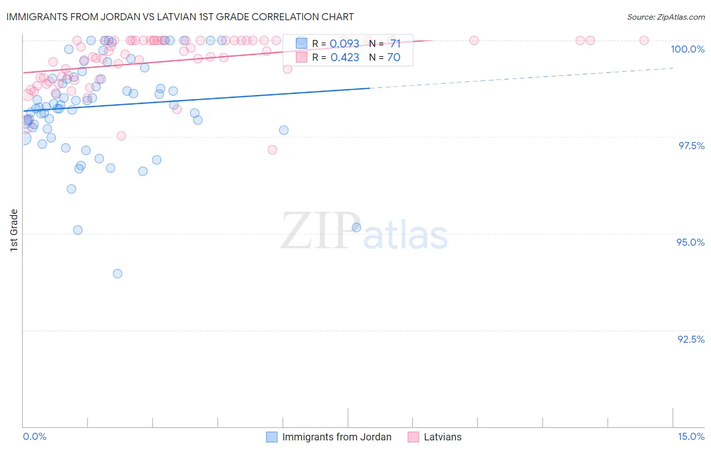 Immigrants from Jordan vs Latvian 1st Grade Correlation Chart