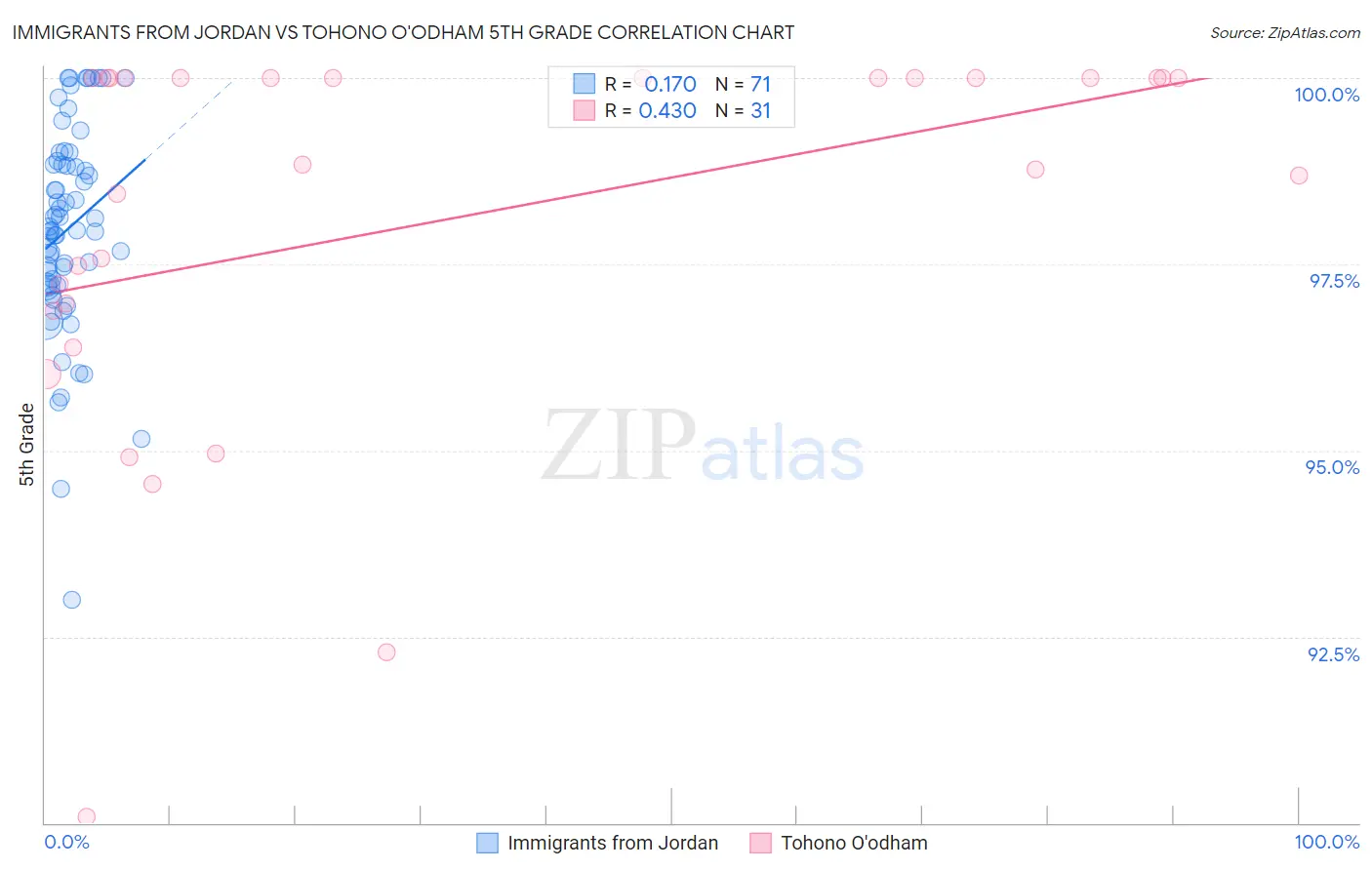 Immigrants from Jordan vs Tohono O'odham 5th Grade Correlation Chart