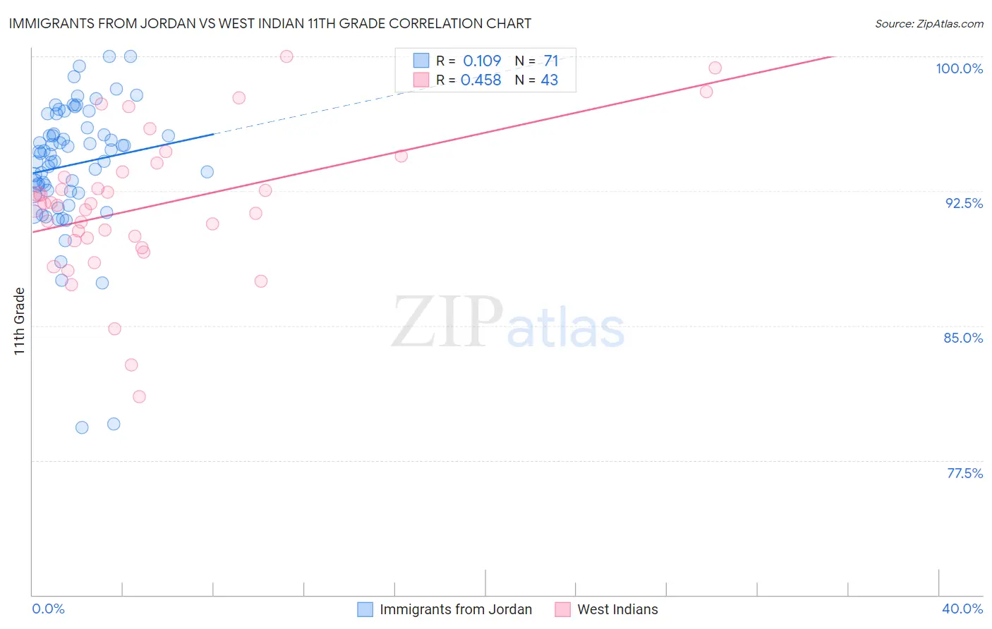 Immigrants from Jordan vs West Indian 11th Grade Correlation Chart