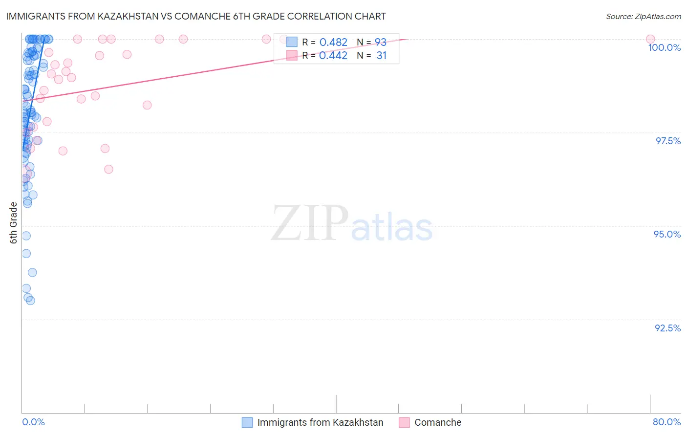 Immigrants from Kazakhstan vs Comanche 6th Grade Correlation Chart