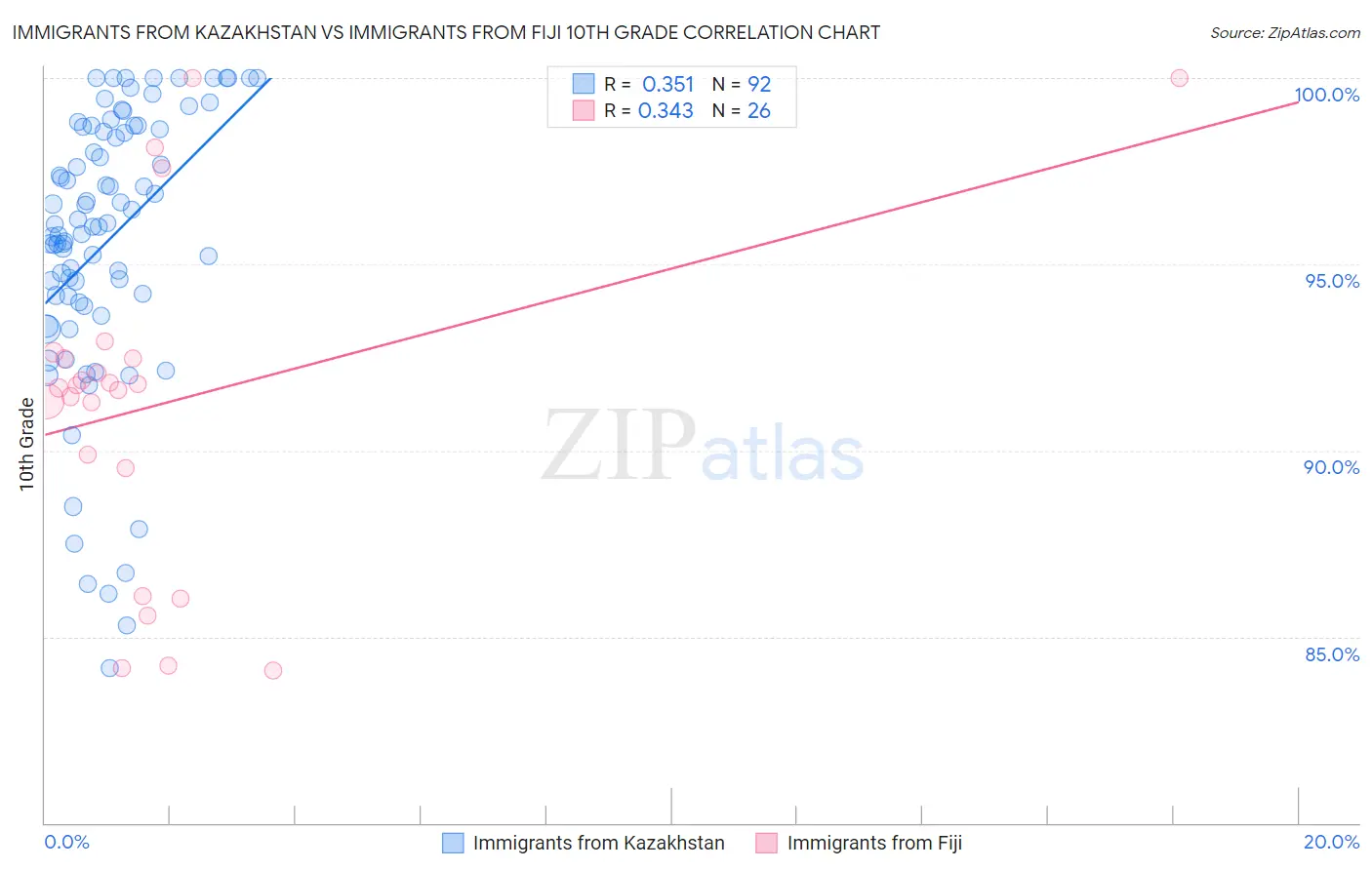 Immigrants from Kazakhstan vs Immigrants from Fiji 10th Grade Correlation Chart