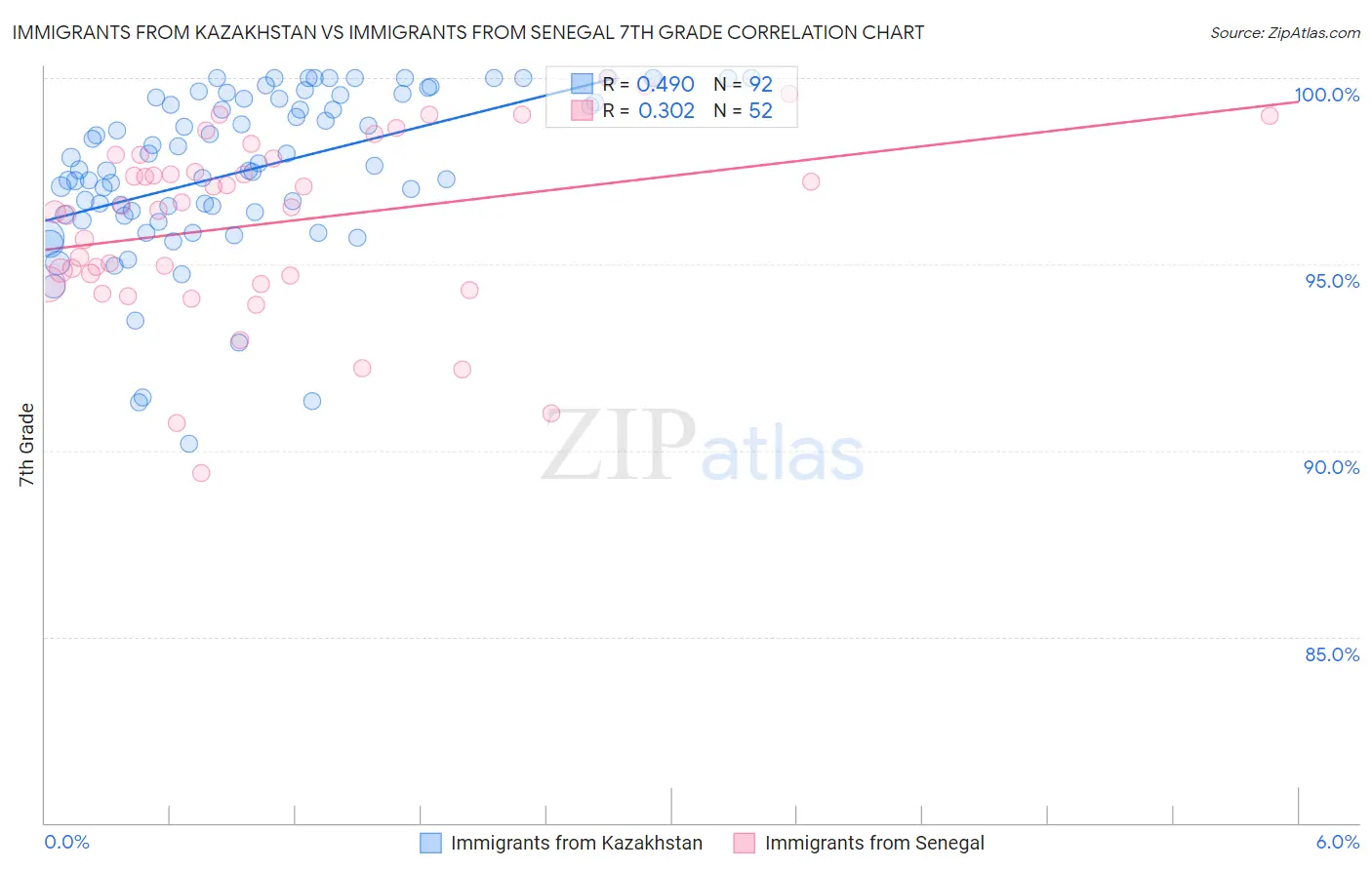 Immigrants from Kazakhstan vs Immigrants from Senegal 7th Grade