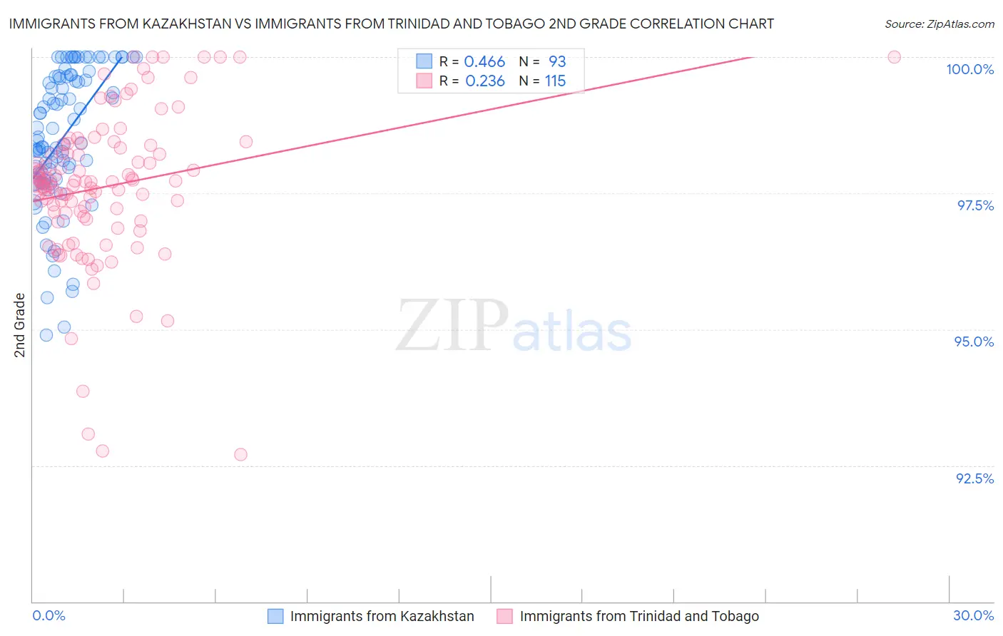 Immigrants from Kazakhstan vs Immigrants from Trinidad and Tobago 2nd Grade Correlation Chart
