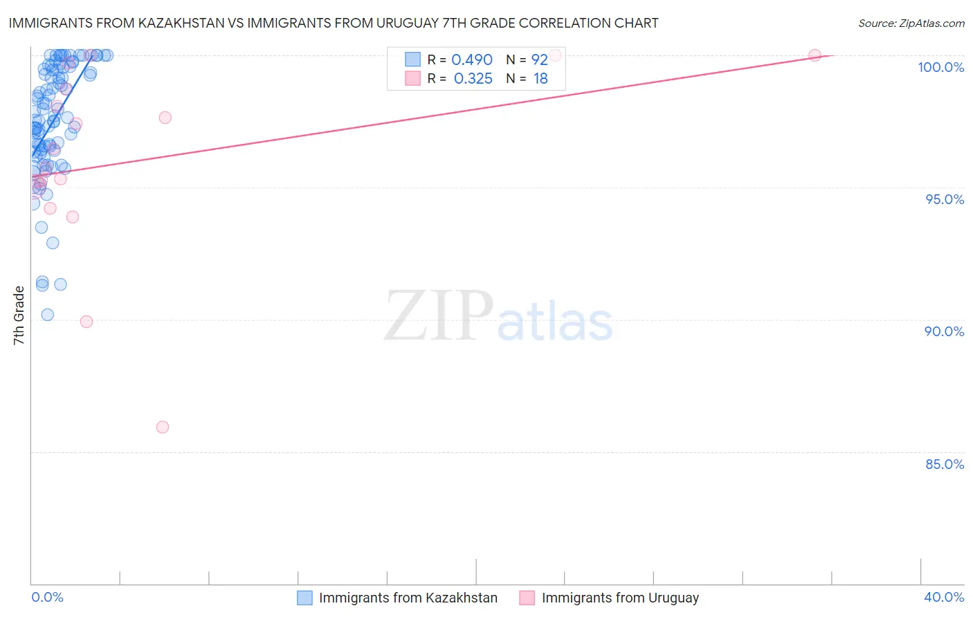 Immigrants from Kazakhstan vs Immigrants from Uruguay 7th Grade Correlation Chart