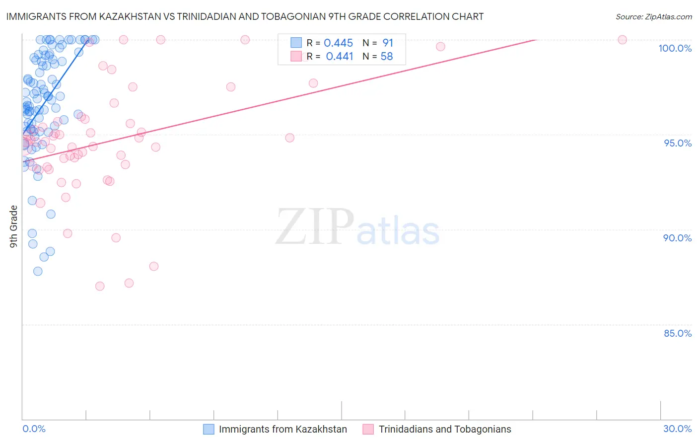 Immigrants from Kazakhstan vs Trinidadian and Tobagonian 9th Grade Correlation Chart