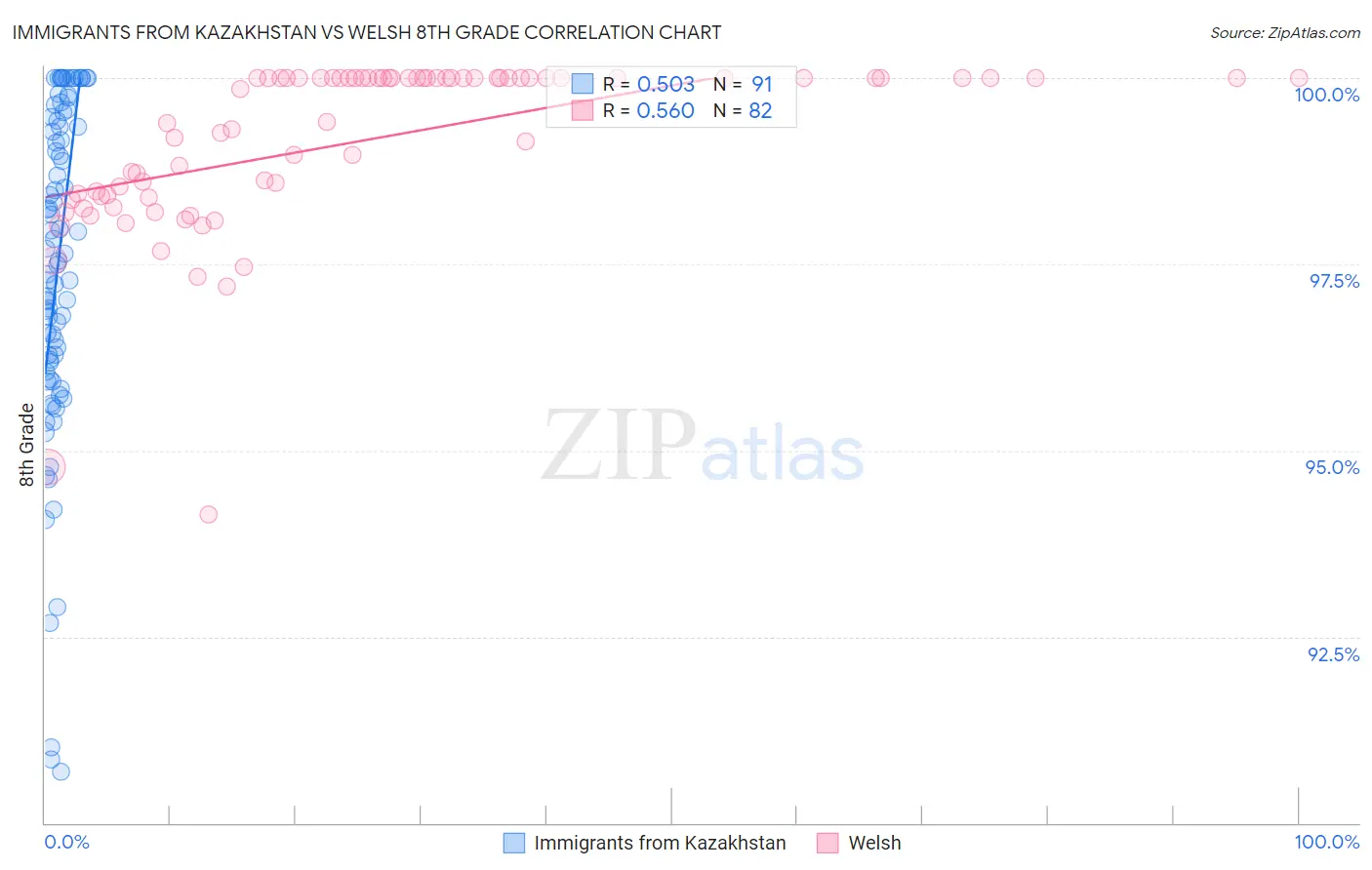 Immigrants from Kazakhstan vs Welsh 8th Grade Correlation Chart