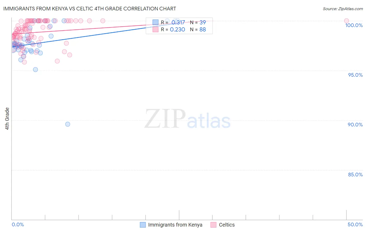 Immigrants from Kenya vs Celtic 4th Grade Correlation Chart