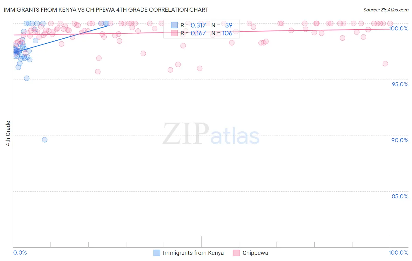 Immigrants from Kenya vs Chippewa 4th Grade Correlation Chart