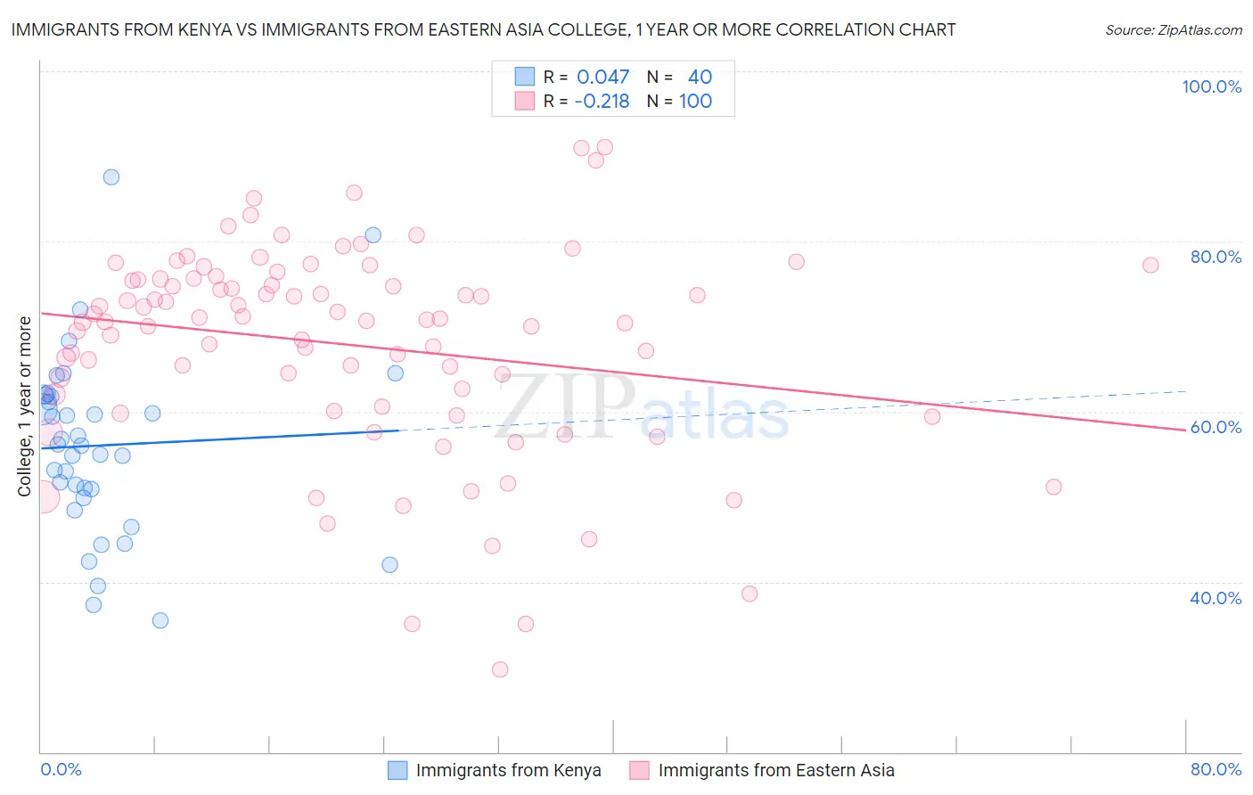 Immigrants from Kenya vs Immigrants from Eastern Asia College, 1 year or more Correlation Chart