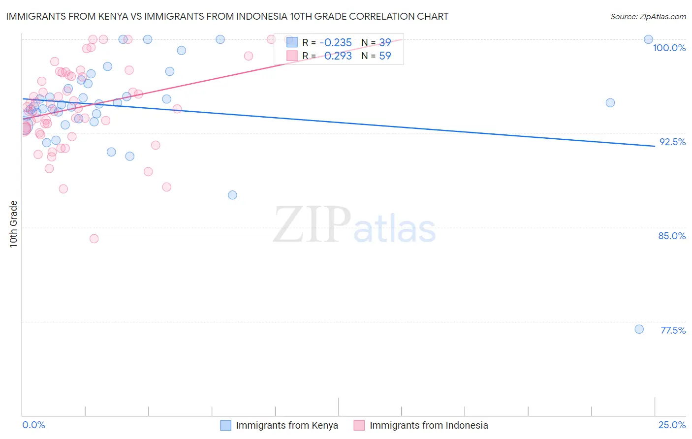 Immigrants from Kenya vs Immigrants from Indonesia 10th Grade Correlation Chart