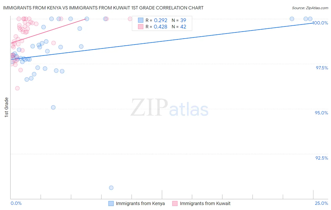 Immigrants from Kenya vs Immigrants from Kuwait 1st Grade Correlation Chart