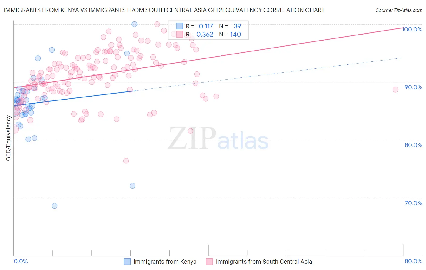 Immigrants from Kenya vs Immigrants from South Central Asia GED/Equivalency Correlation Chart